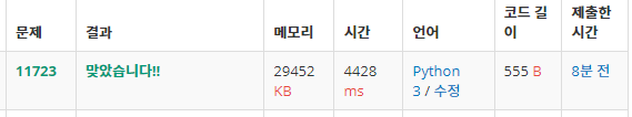 | [테스트케이스 모음] 백준 2805번 : 나무자르기 python, 파이썬 (3) | 2021.07.20 |