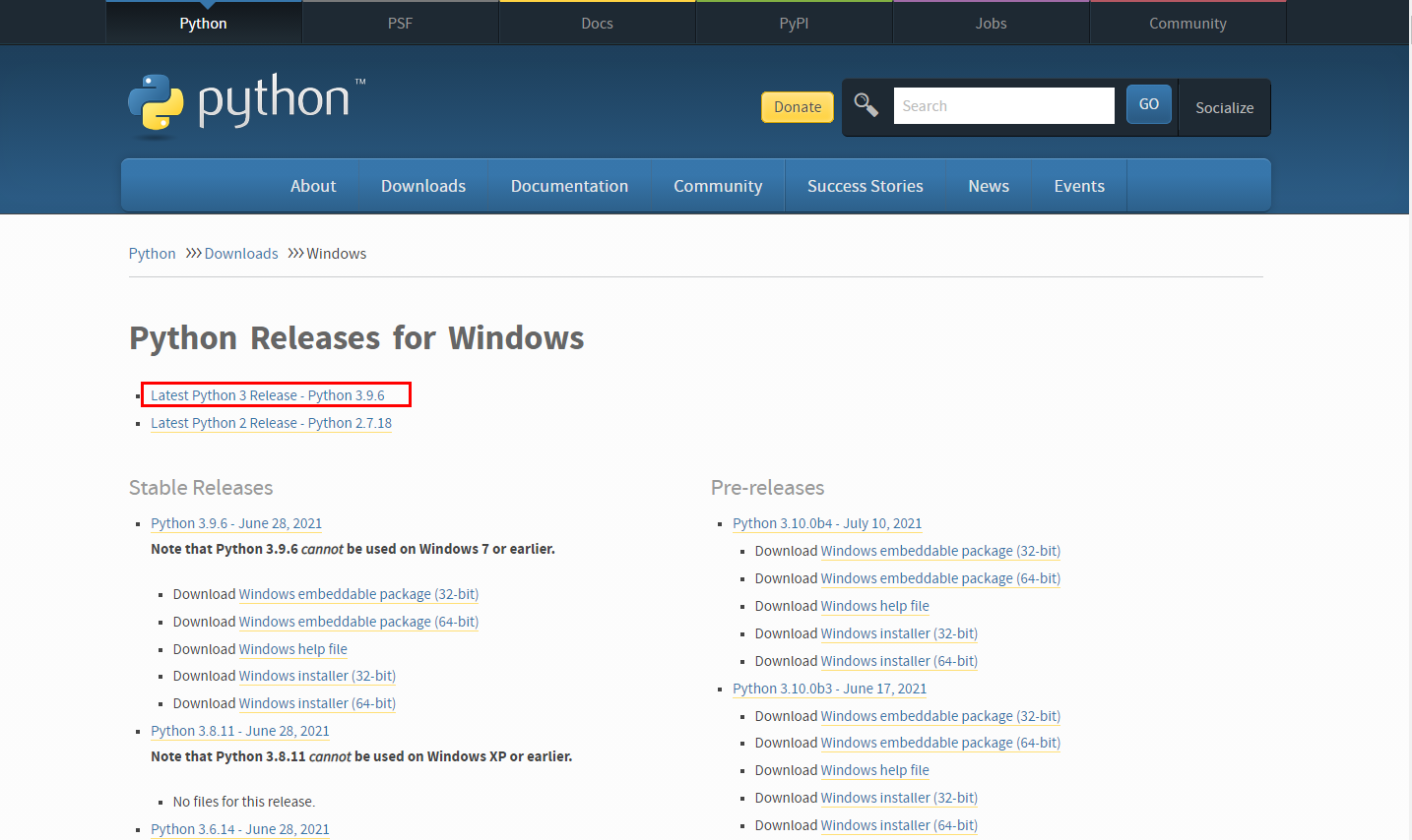 VS Code가 있다는 가정하에 Python Download 페이지에서 Windows 최신 버전을 다운받는다.