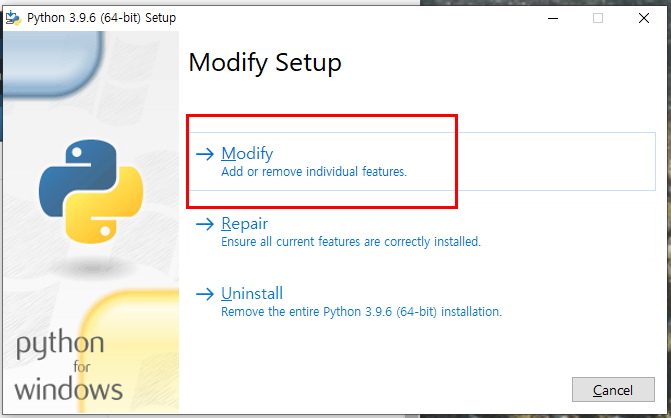4. 다음과 같이 파이썬 설치된 결과를 확인한다.